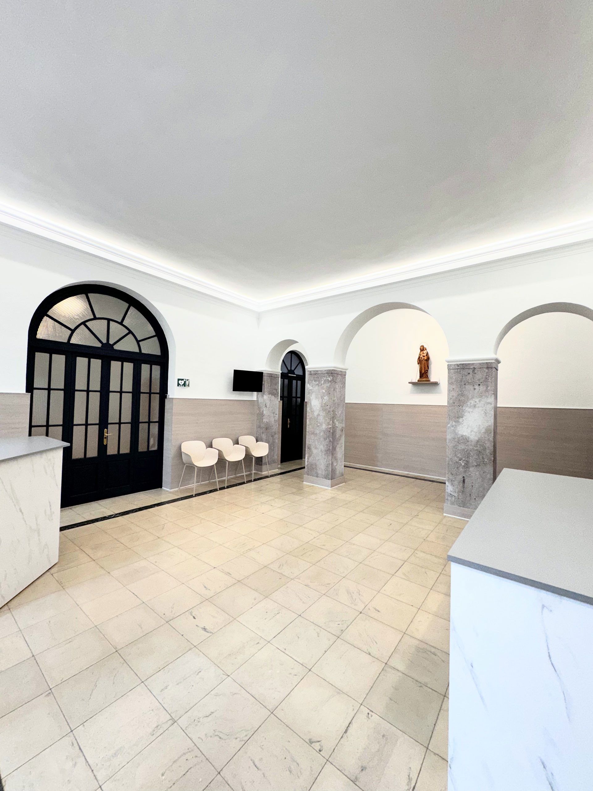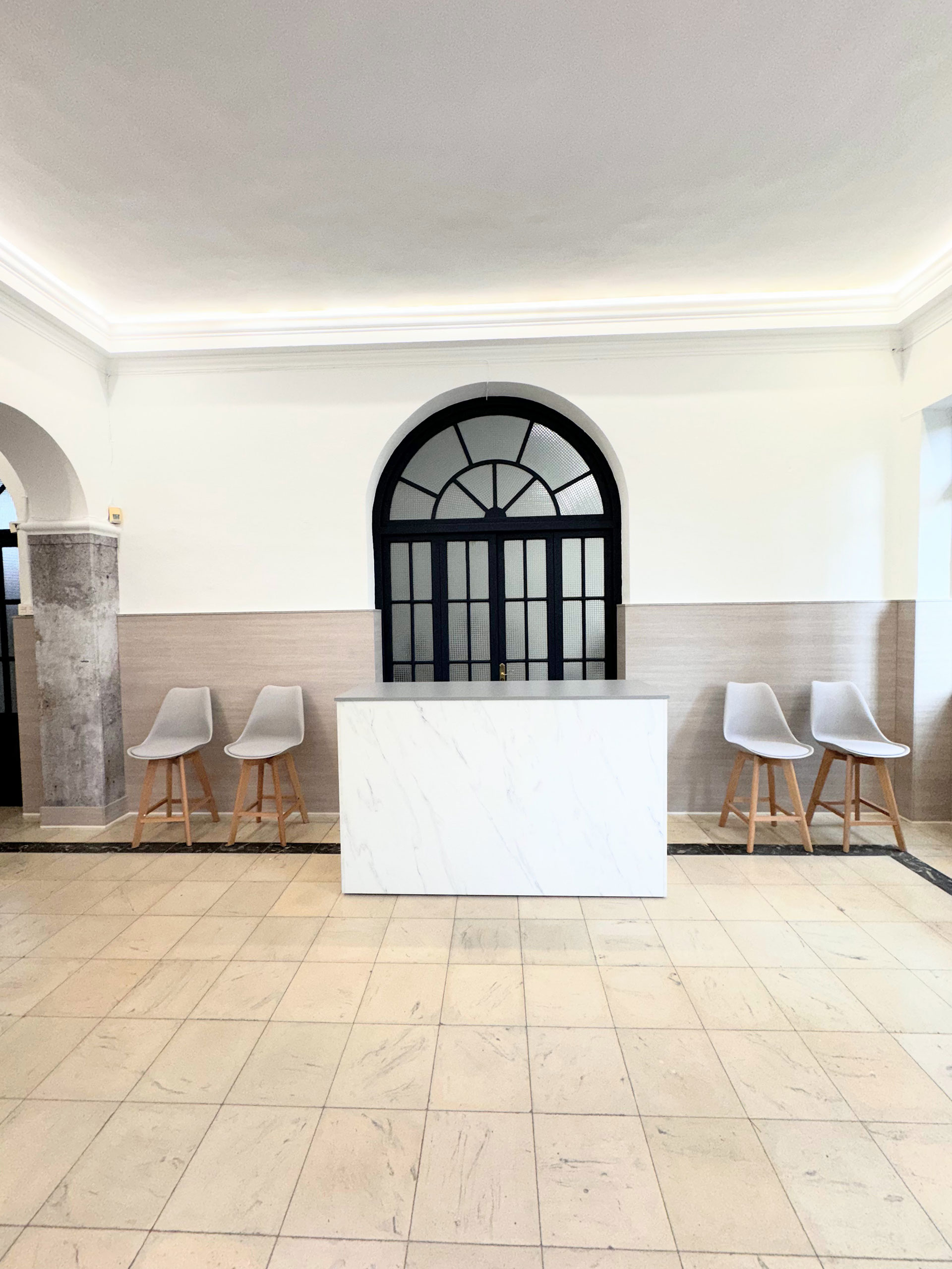 Una entrada de colegio mucho más visual, iluminada, clara y moderna. Una reforma rápida en menos de 3 semanas y sin invadir espacios de trabajo. Una forma cómoda de poder renovar este colegio sin complicaciones y de forma ágil.